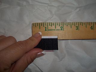 Cut off about an inch and a half of the self-adhesive Velcro strip for each shoe.