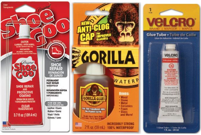 If your shoes are dirty, or have a groove in the heel, the strip may not adhere securely. Epoxy-based glues, Shoe Goo, Gorilla Glue, Velcro Glue, Seam grip, and hot glue can be used.