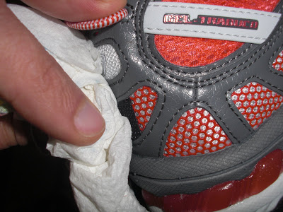 Make a glob of SeamGrip on a piece of paper. Remove the backing from the Velcro and use it to scoop up some SeamGrip. I find this cleaner than trying to apply the glue to the shoe or to the Velcro directly. Wet your fingers before working with SeamGrip if you don't want the stuff all over your hands.