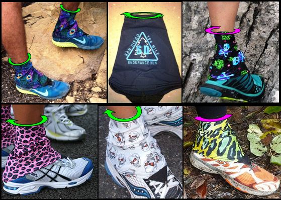 You can wear them with barefoot or minimalist footwear! If you plan to wear these with Vibrams or minimalist type shoes, please consider ordering a size down. Dirty Girl Gaiters are sized to be worn with running shoes. Since Barefoot shoes conform more tightly around the feet, a smaller size is usually a better fit.