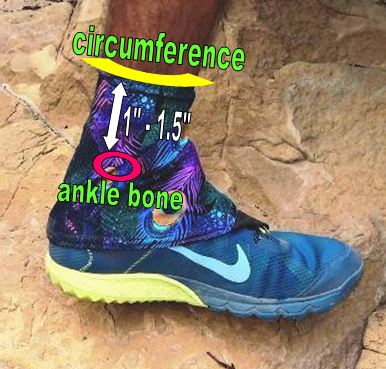 If your ankle circumference is not within the range associated with your shoe size, the Dirty Girl Gaiter is probably not going to be the right product for you. The diagrams below illustrate the area you will be measuring.